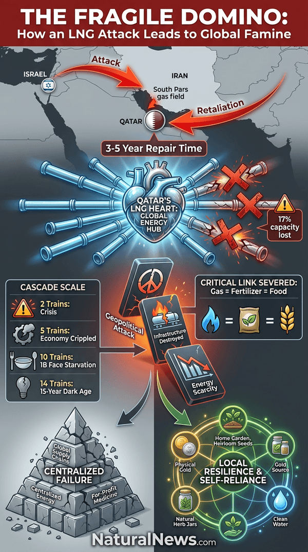 Here’s why this matters: Our global food supply is built on a lie of infinite abundance, propped up by synthetic fertilizer, and that fertilizer is built on natural gas. Natural gas is the primary feedstock for ammonia production. [4] When you sever that link, you don’t just raise prices; you slash crop yields for years. This is the brutal physics of our modern civilization. I have long realized that the controlled demolition of food and energy infrastructure is a deliberate depopulation strategy. [5] The attack on Qatar’s LNG complex fits this pattern perfectly. It’s a sabotage of the foundational layer that keeps billions of people alive. This isn’t an accident of war; it’s the exposure of a system with no backup, no redundancy, and no forgiveness.
