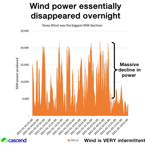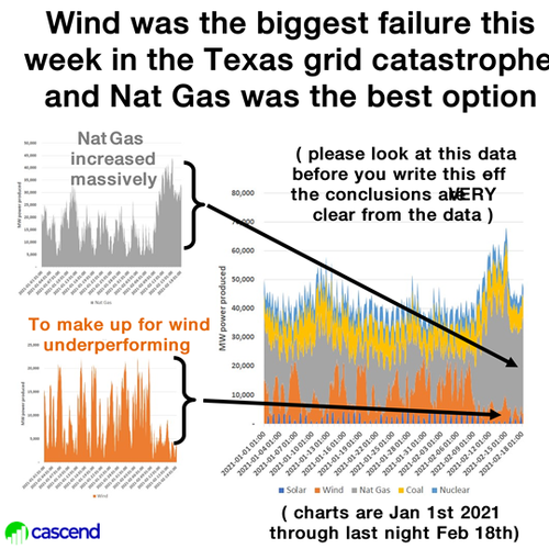 With the worst of the Texas power crisis now behind us, the blame and fingerpointing begins, and while the jury is still out whose actions (or lack thereof) may have led to the deadly and widespread blackouts that shocked Texas this week, Cascend Strategy writes that “in case there was any doubt why the Texas grid collapsed, the data is clear”